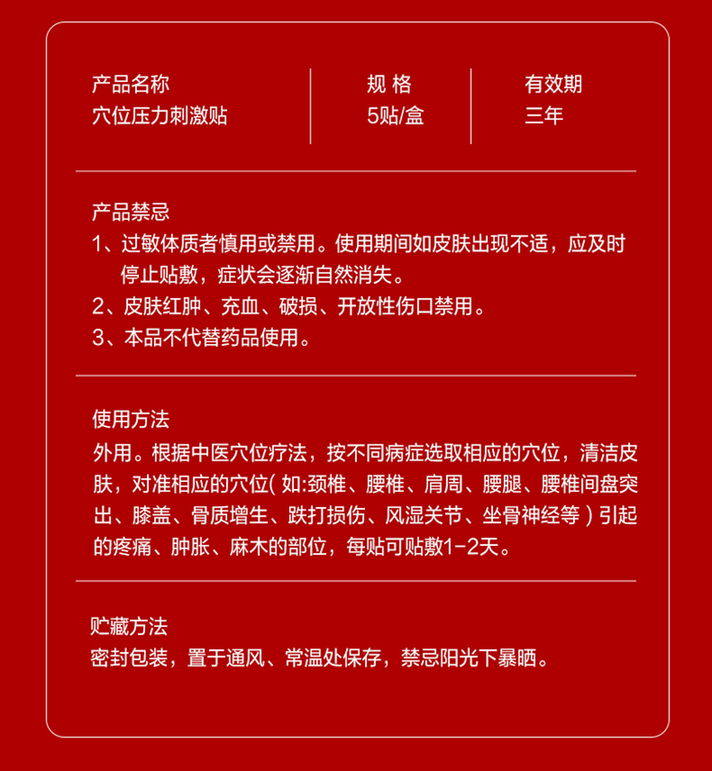 穴位压力刺激贴(热感)